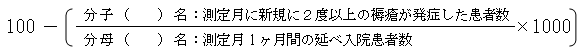 - 入院中の医療とケアの質の評価が目的です。入院時に既に発熱していた患者は分母と分子から除いてください。